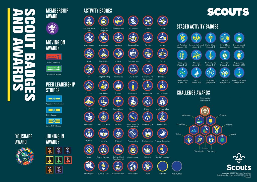 Here are the badges that Scouts can earn by regularly attending meetings: